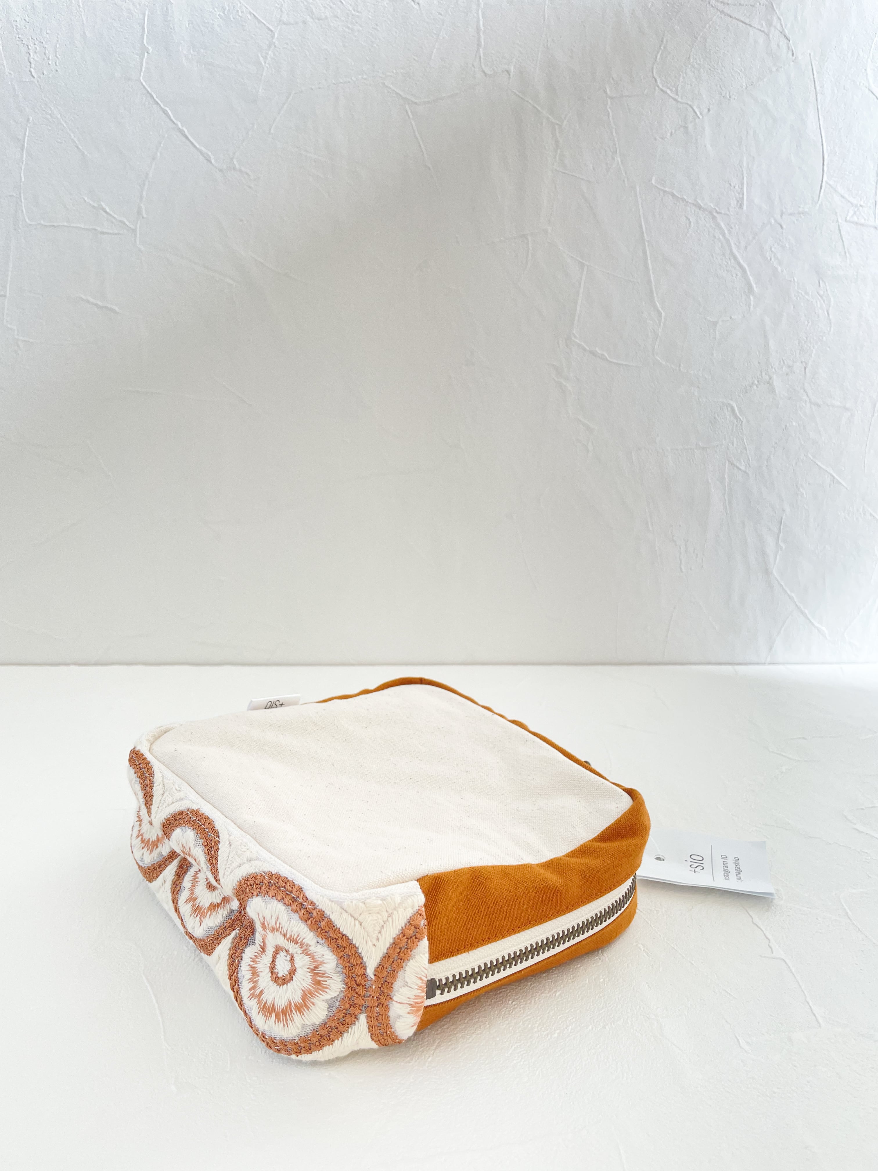 帆布のシンプルさとインド刺繍リボンの華やかさがいいバランスになっています。