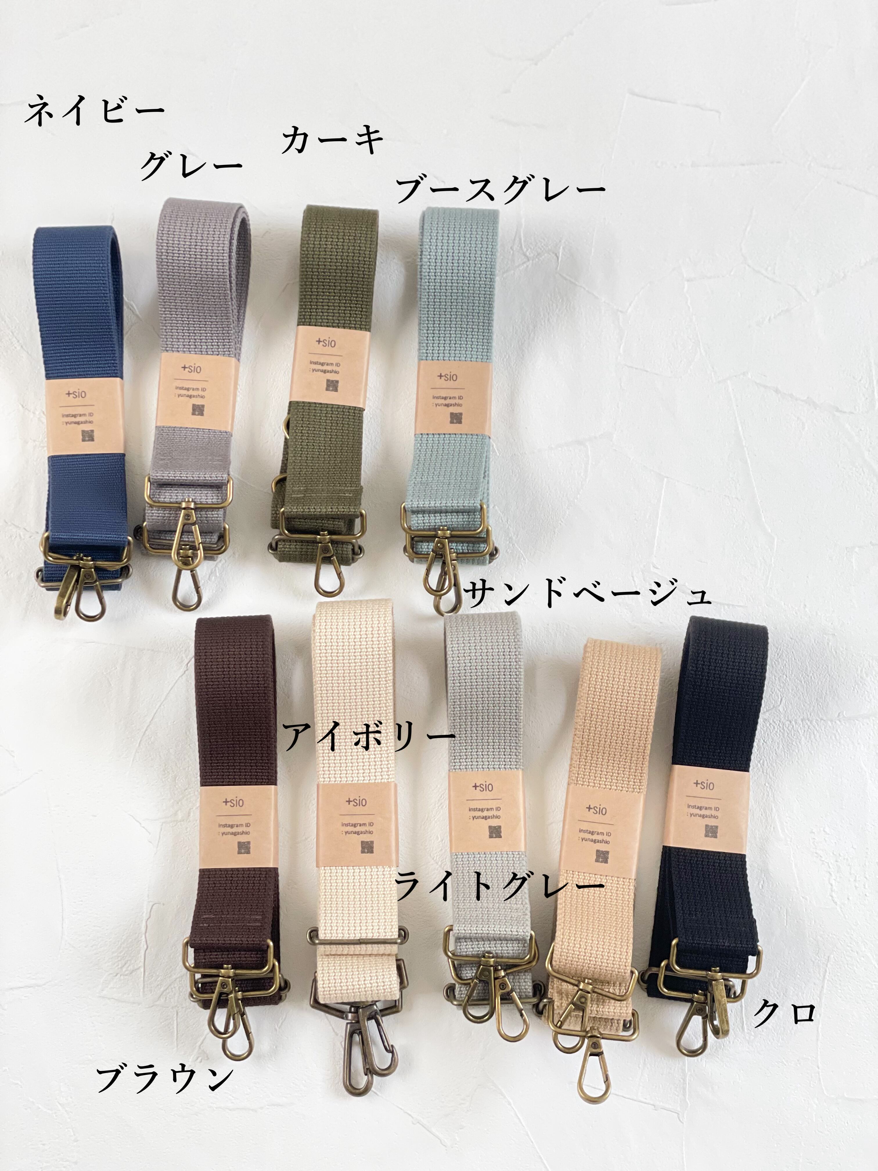 30mm幅の合皮タイプと、持ち手と同じ素材で作った38mm幅のテープタイプがあります。