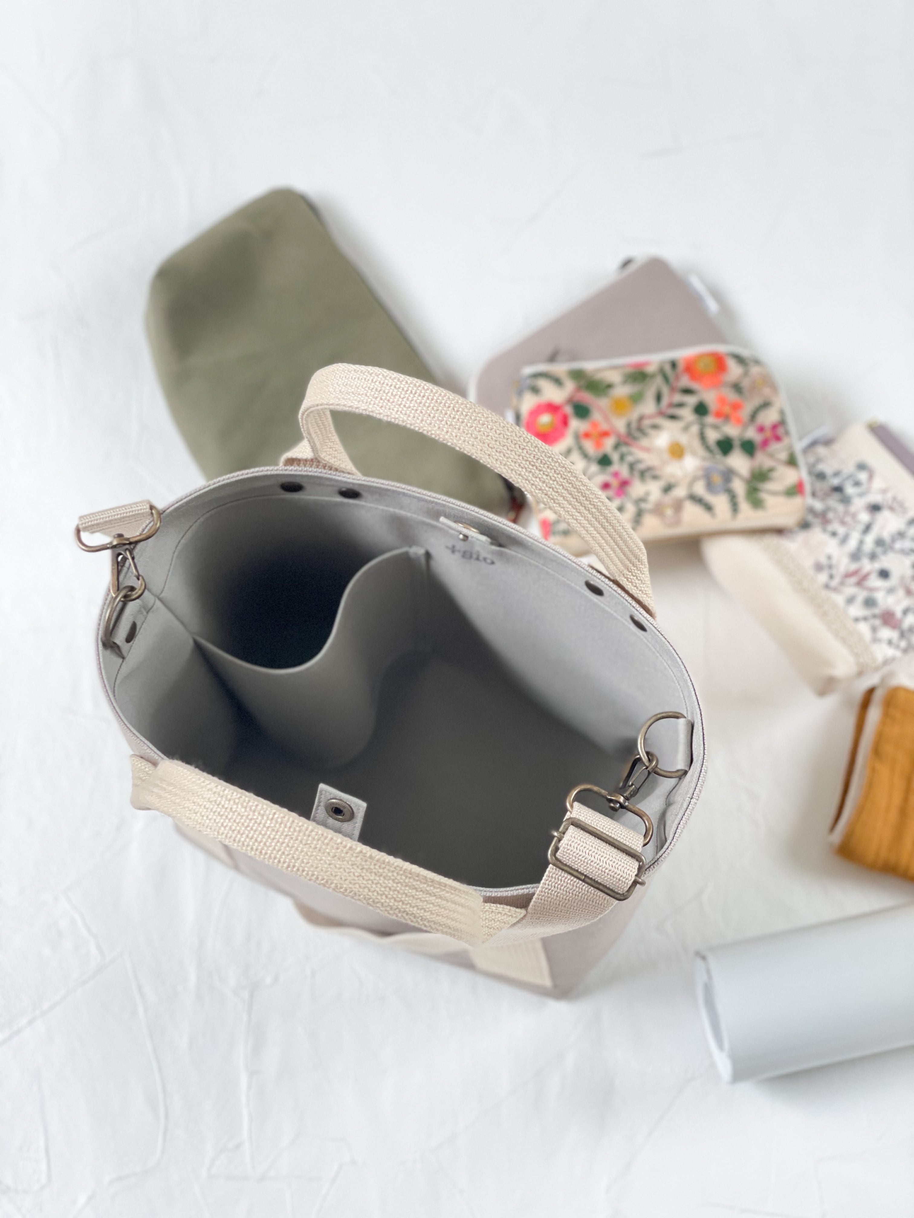 エコバッグや財布、ポーチなど必要なものが入るように容量を大きくしつつ極力コンパクトにできました。