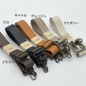 30mm幅の合皮タイプと、持ち手と同じ素材で作った38mm幅のテープタイプがあります。